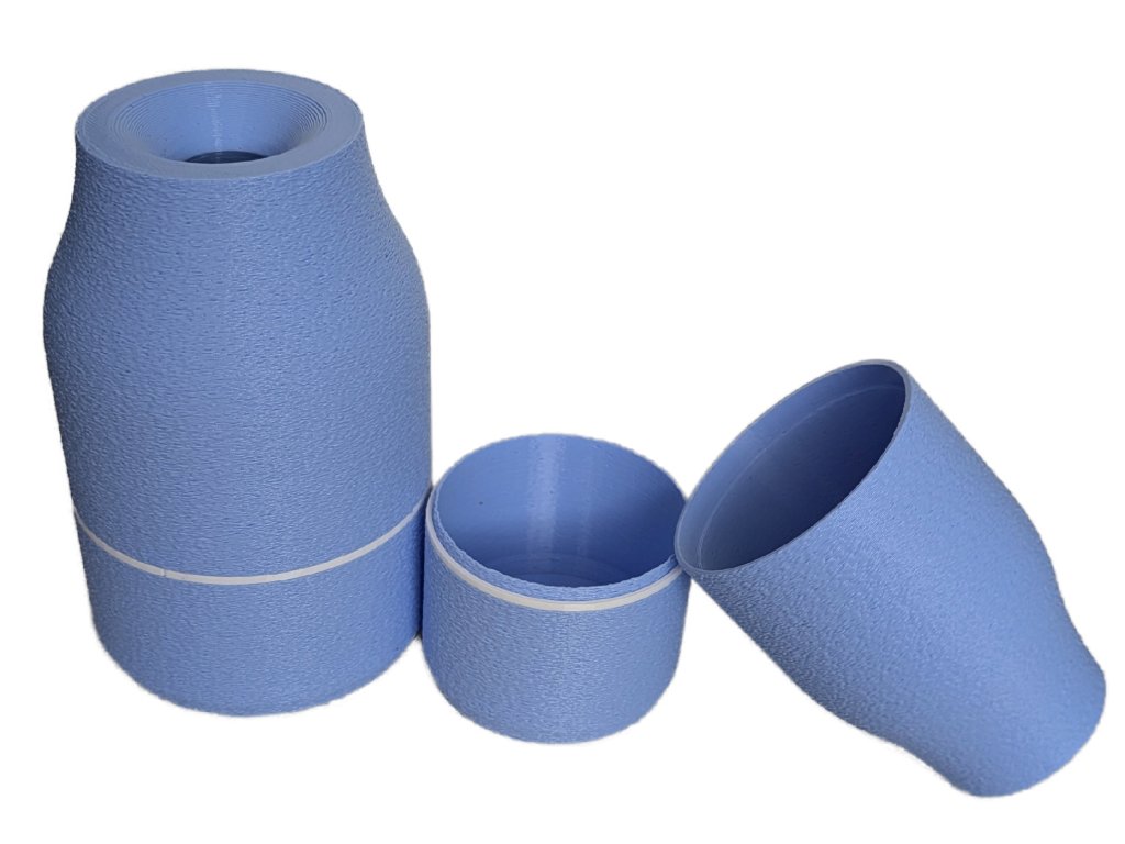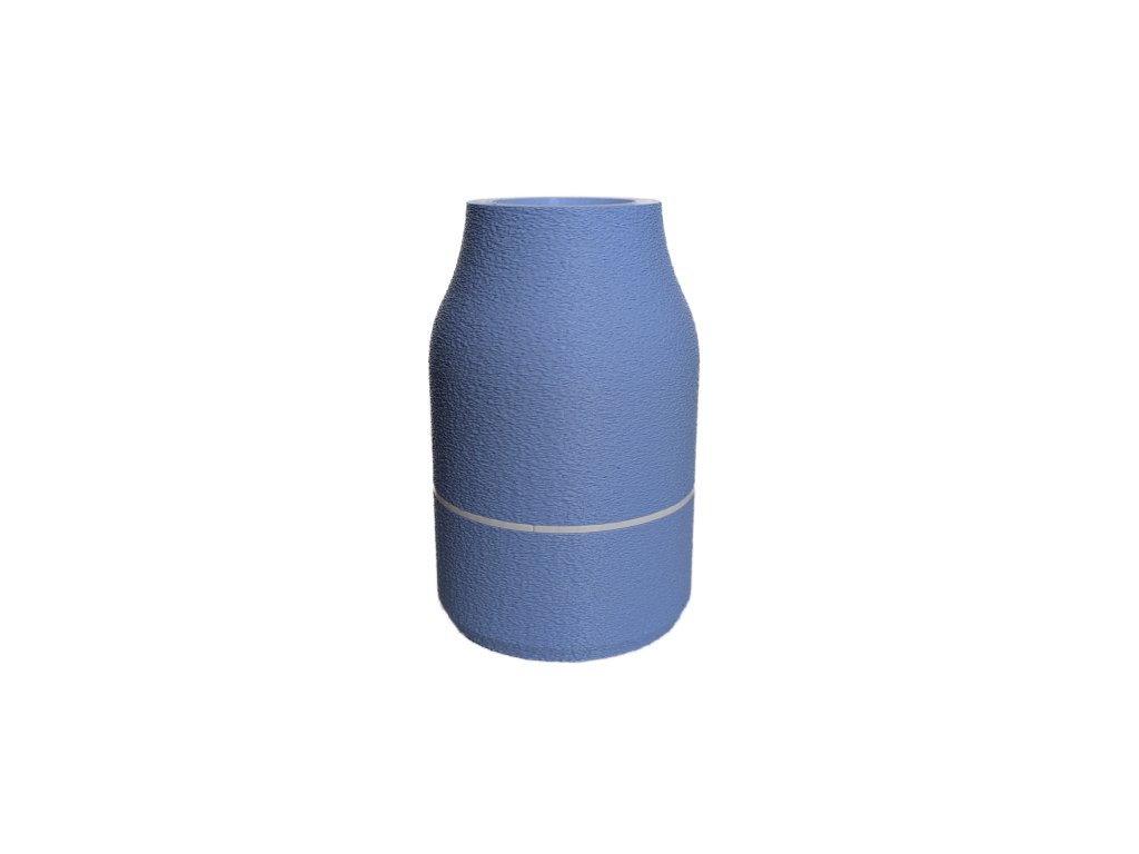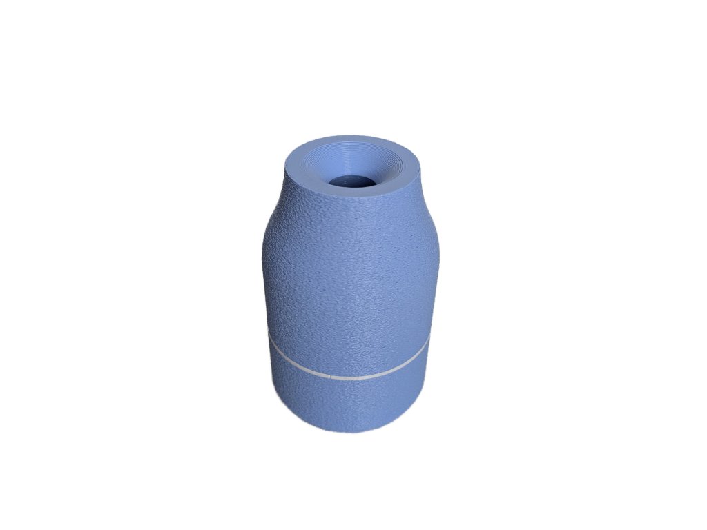 Tento popelník z naší produkce má jedinečný design díky texturovanému povrchu, velmi snadné otevírání a velký zásobník na nedopalky. Je omyvatelný, lehký a velmi příjemný do ruky. Popelník lze vyrobit ze všech možných barev z naší nabídky filamentů, lze různě kombinovat i se středovým kroužkem. V v této variantě nabízíme barvu pastelově modrou s bílým kroužkem. Je velmi lehký a zároveň odolný. Vyrábíme jej ve třech velikostech. Produkt je vyroben na 3D tiskárně z biologicky nezávadného materiálu. Není určen pro klasické cigaretové nedopalky.
